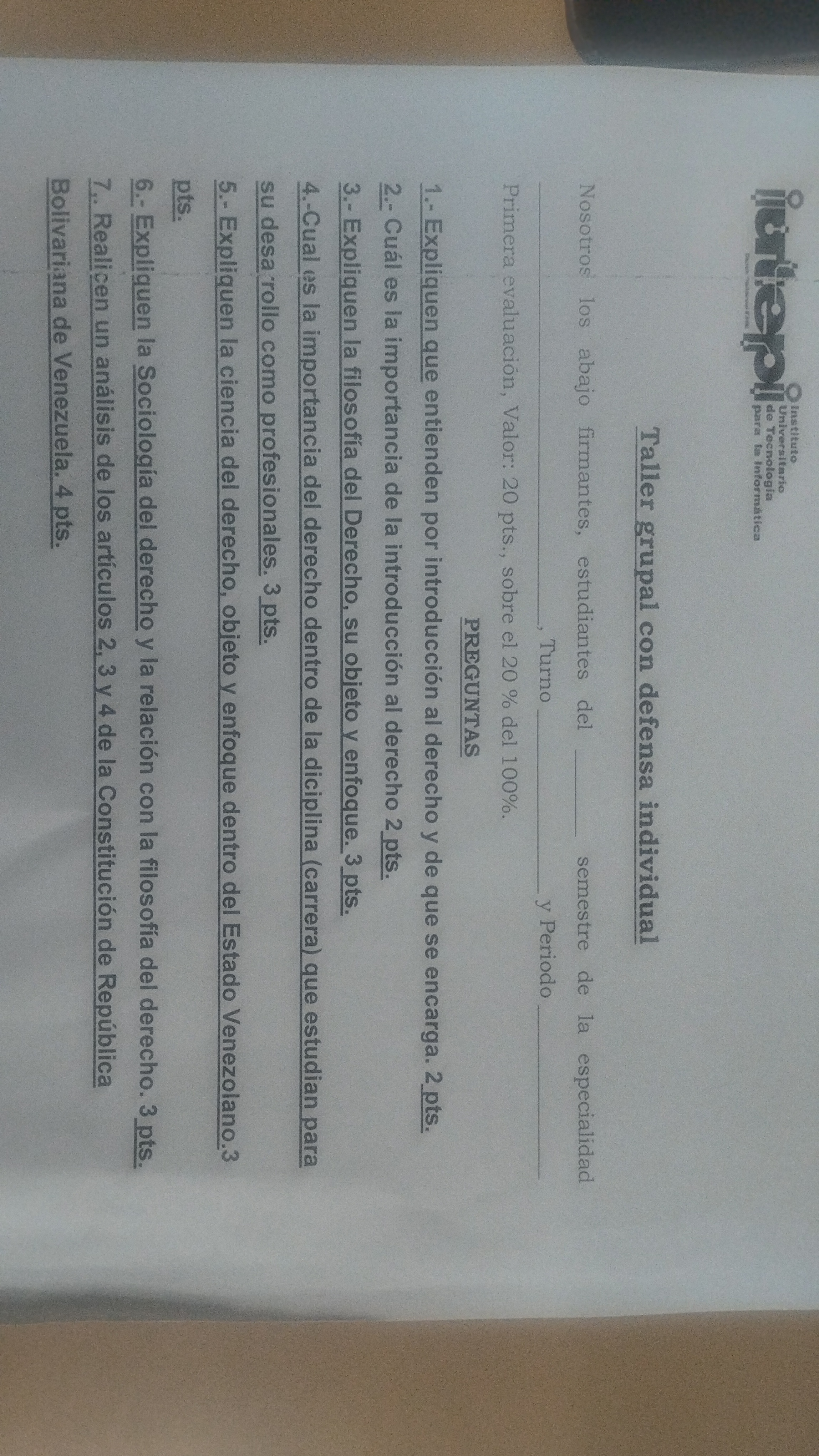◄ Primera Evaluación. ( Taller escrito)